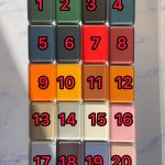 17-یاسی, 18-بادمجونی, 19-نیلی, 2-سبز چمنی, 4-آبی نفتی, 5-سرمه ای, 6-ملوانی, 7 قرمز, 8-زرشکی, 9-نارنجی, 15-سفید, 14-نقره ای, 16-صورتی, 20-گلبهی, 3-مشکی, 13-طلایی, 12-شتری, 11-قهوه ای, 10-خردلی, 1-سبز لجنی