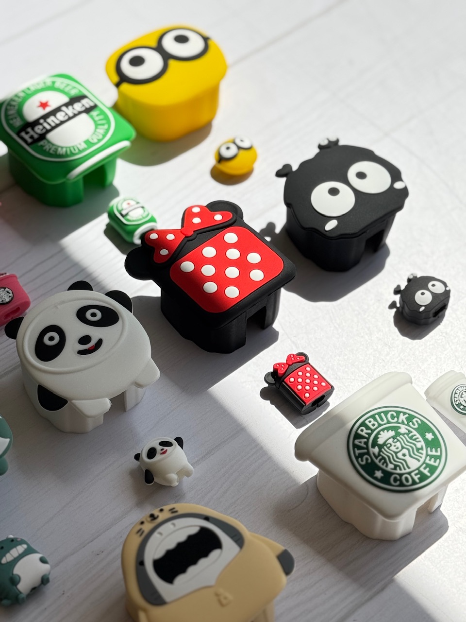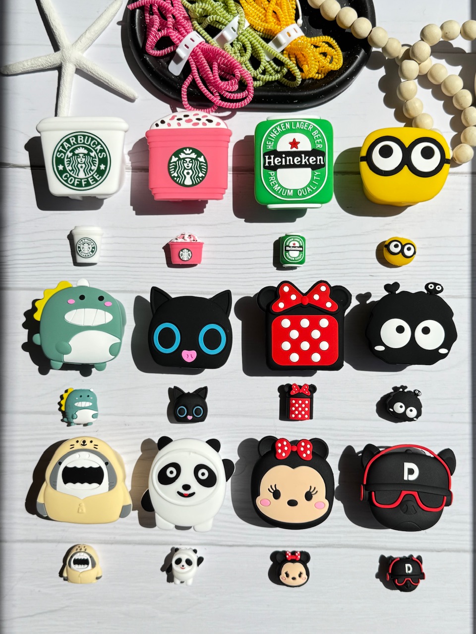 | طرح | 11-مینی موس صورت, 12-بول داگ, 10-پاندا, 1-استارباکس سفید, 2-استارباکس صورتی, 3-هانیکن, 4-مینیون, 5-بچه دایناسور, 6-گربه چشم تیله ای, 8-هپل شاخ دار, 7- مینی موس خال خالی, 9- کوسه |